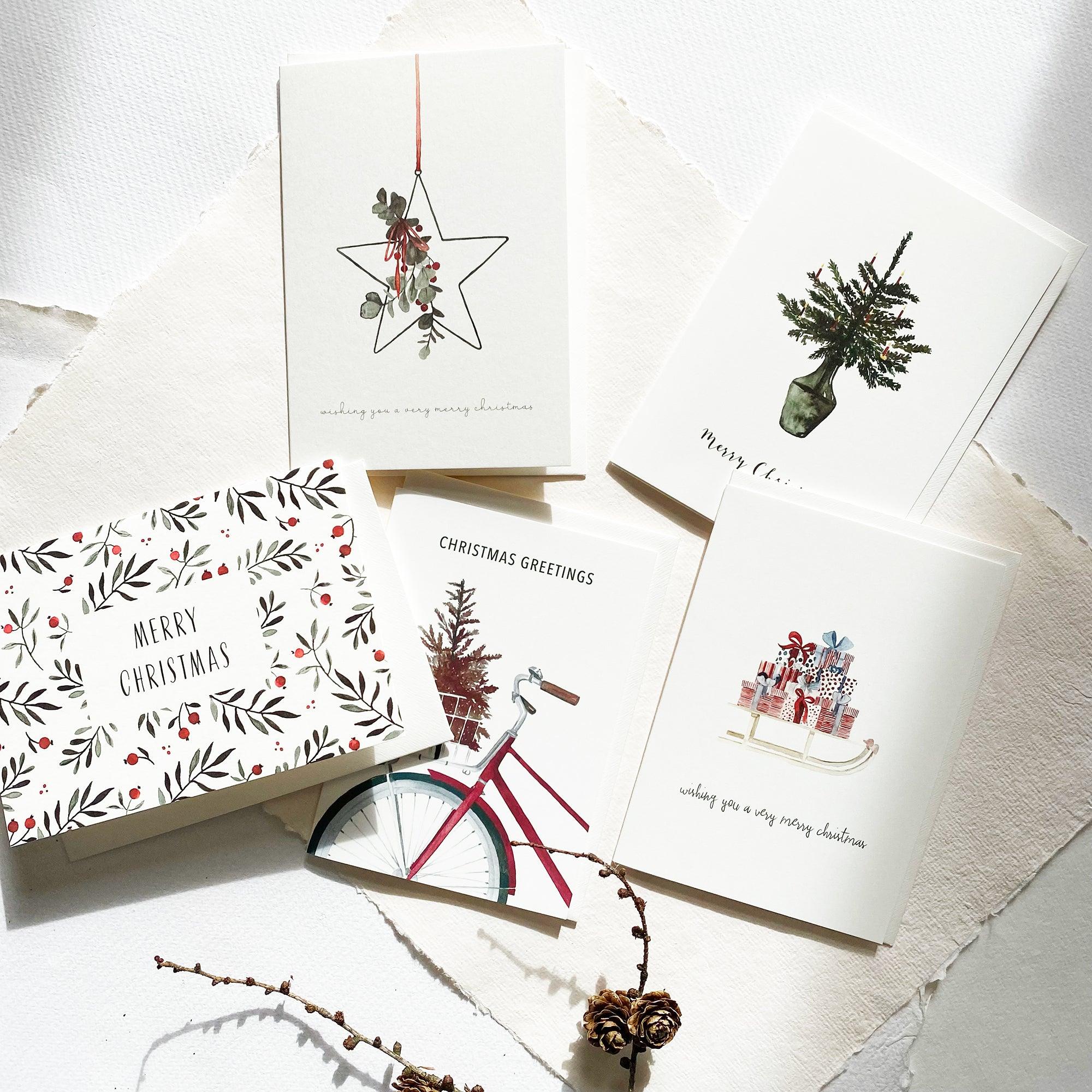 Weihnachtskarten-Set bestehend aus 5 Klappkarten inkl. passender Briefumschläge.