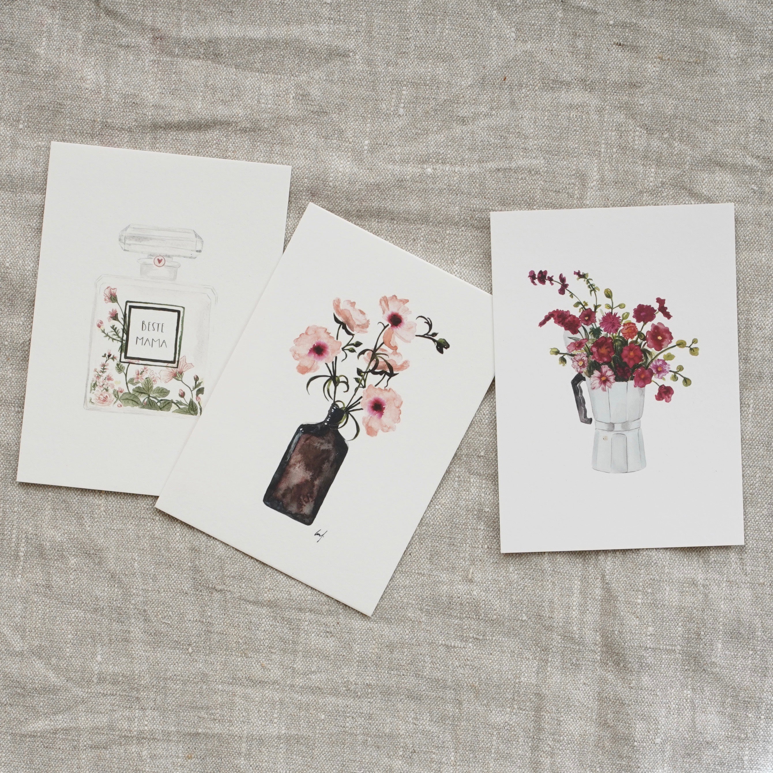 Mit viel Liebe designed in unserem Atelier von Illustratorin Leonie Merle Flöttmann. Die Original-Illustrationen - von Hand gemalt mit Pinsel, Stift und Aquarellfarben - werden anschließend im Offsetdruckverfahren auf hochwertigem, warmweißem Naturpapier (300g) gedruckt.
