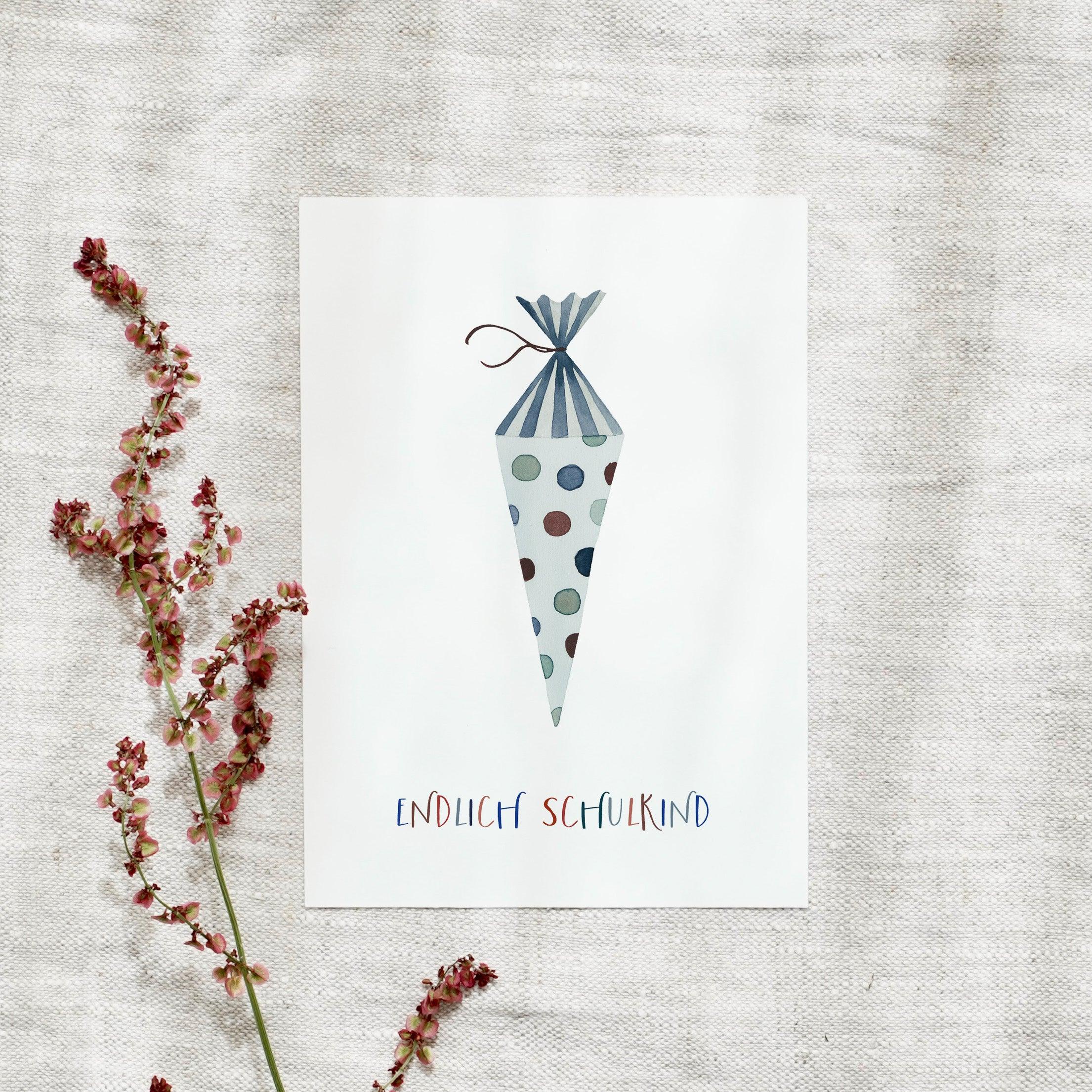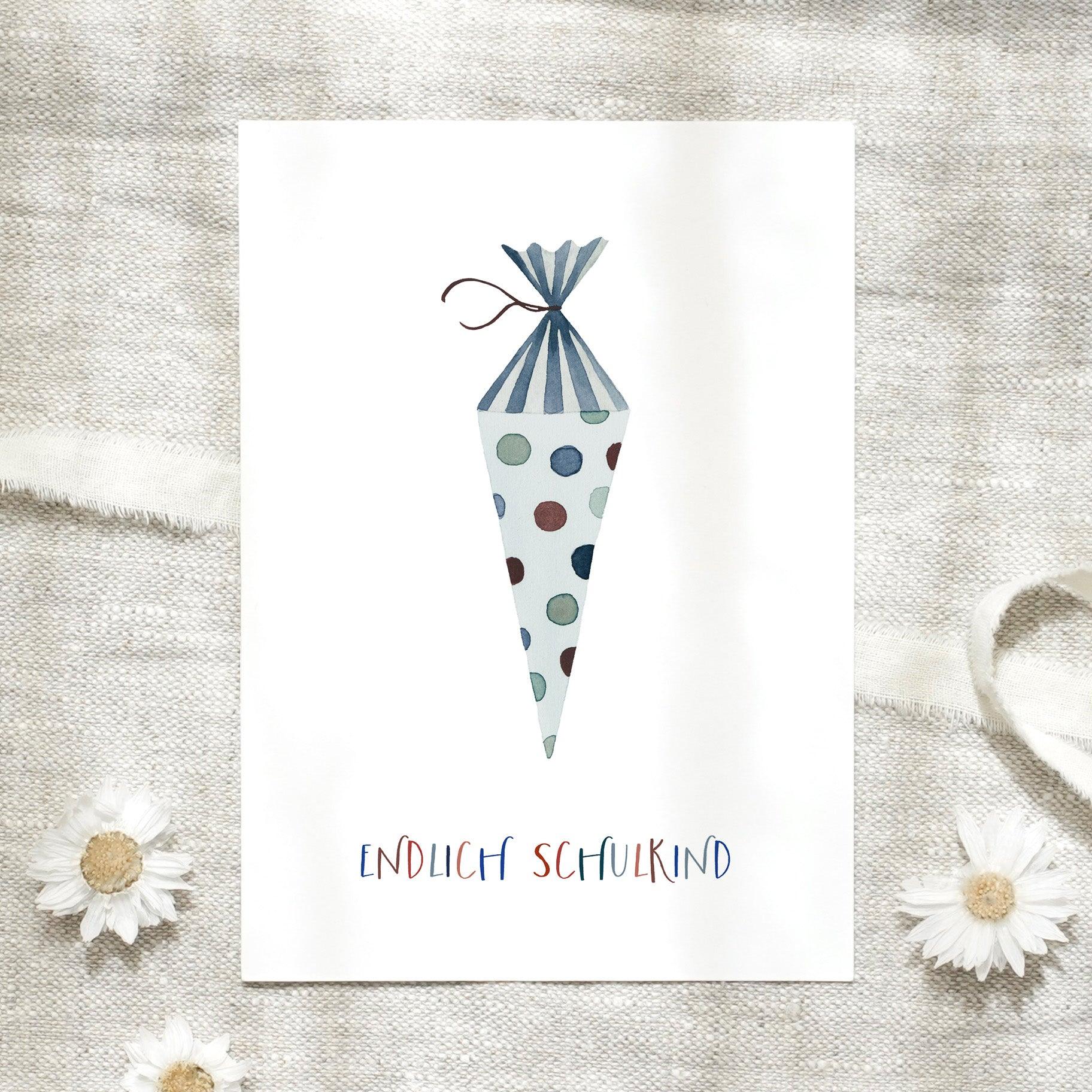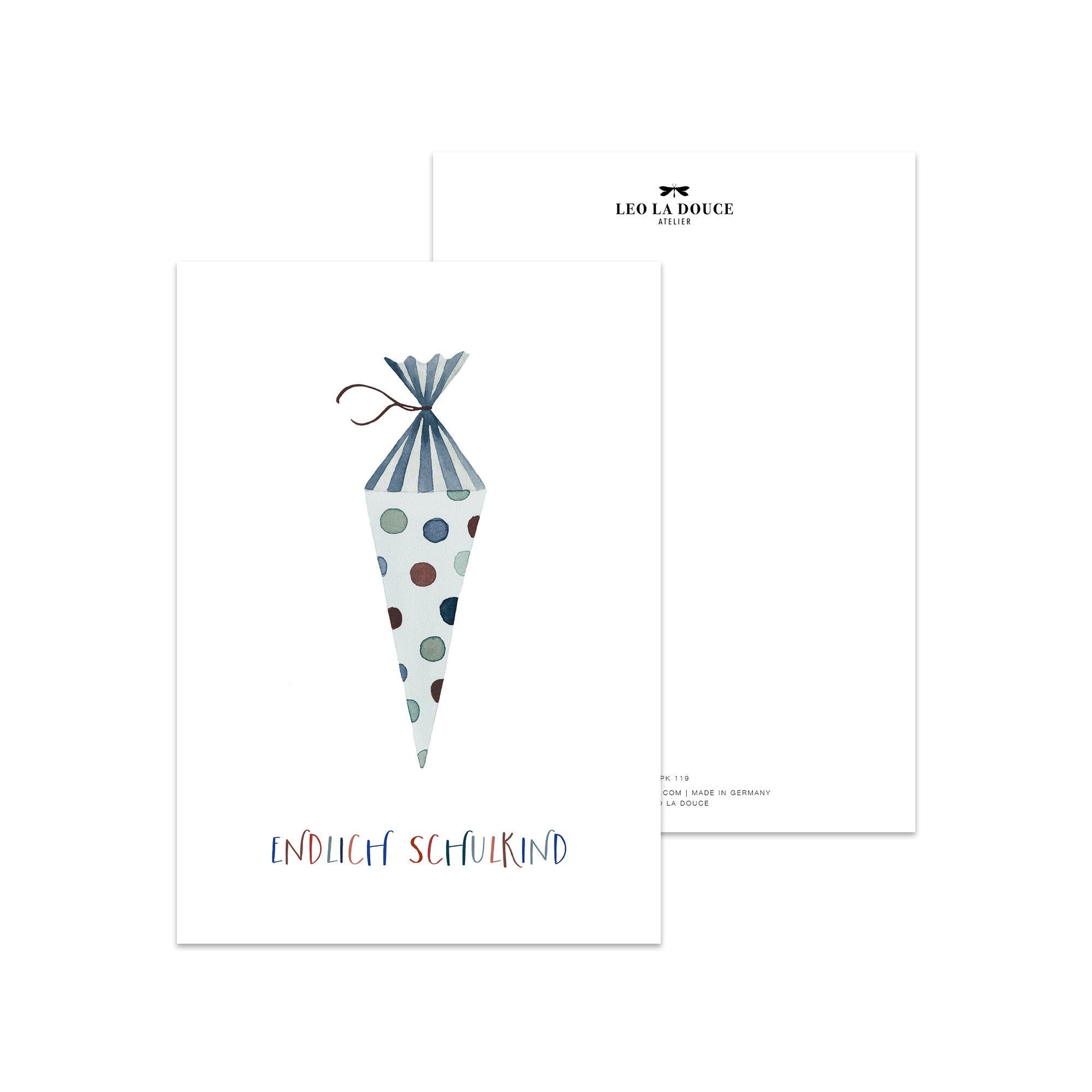 Postkarte · Einschulung | Schultüte Blau