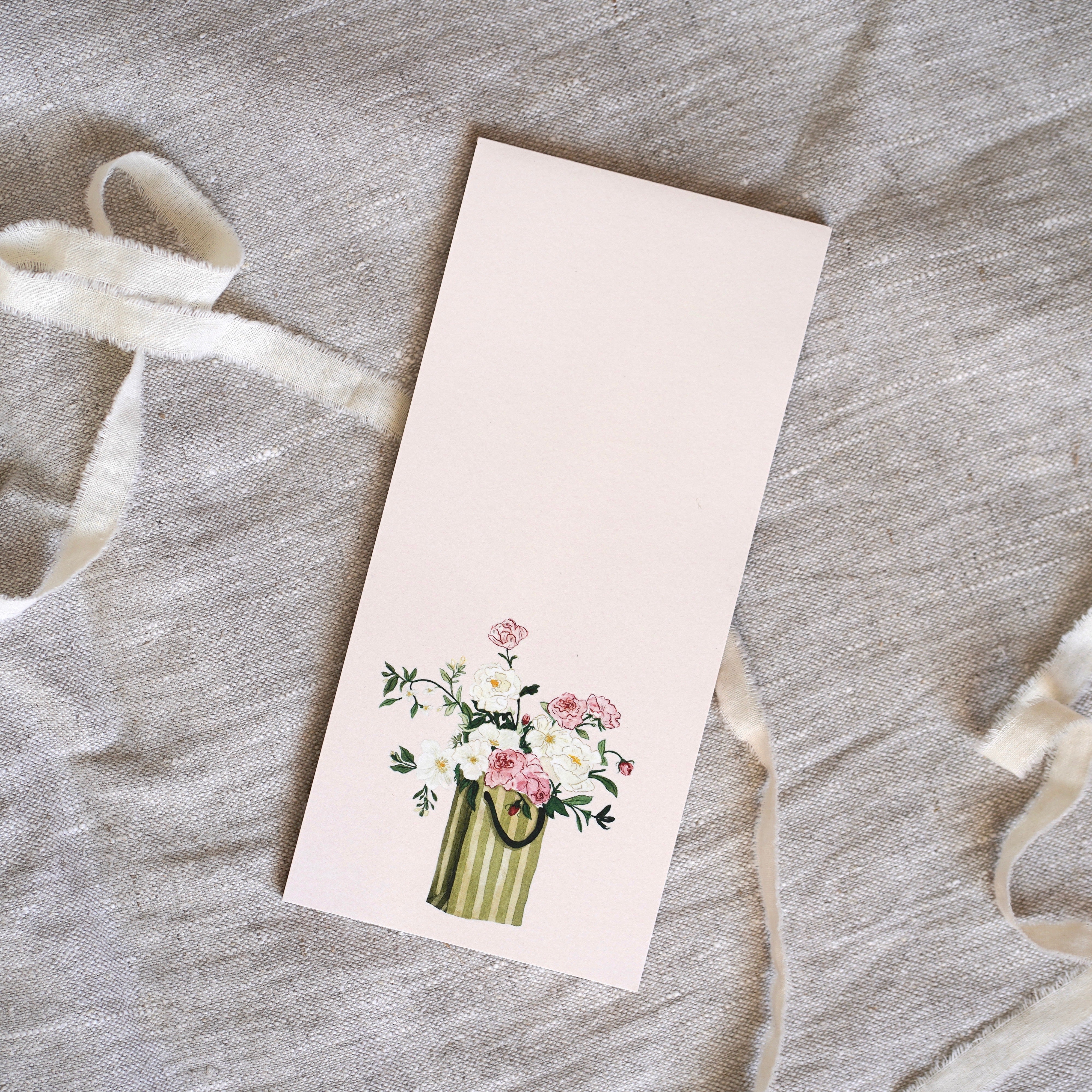 Alle Notizblöcke werden in unserem Atelier von unserer Illustratorin Leonie illustriert und designed. Gedruckt wird im Format 10,5 x 21,0 cm (DIN lang) auf ein cremefarbenes Naturpapier (80g). Der Notizblock besteht aus 50 Seiten zum Abreißen.