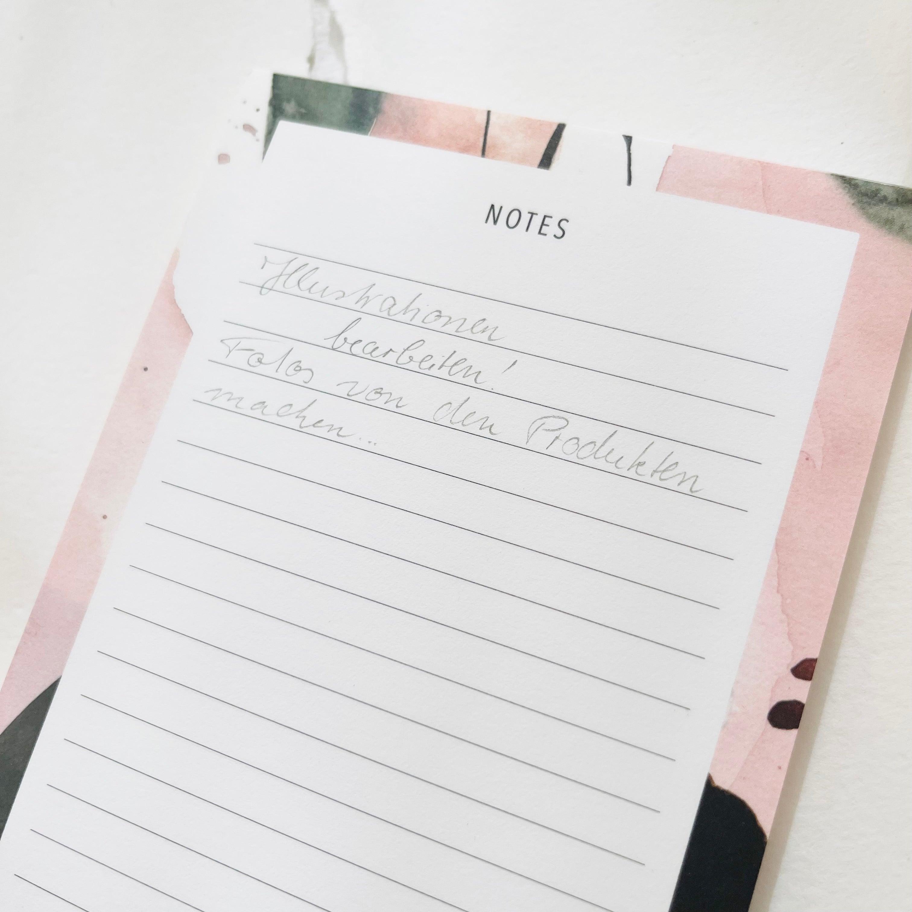 Alle Notizblöcke werden in unserem Atelier von Leonie Merle Flöttmann illustriert und designed. Gedruckt wird im Format DIN A6 auf ein cremefarbenes Naturpapier (80g). Der Notizblock besteht aus 50 Seiten zum Abreißen.