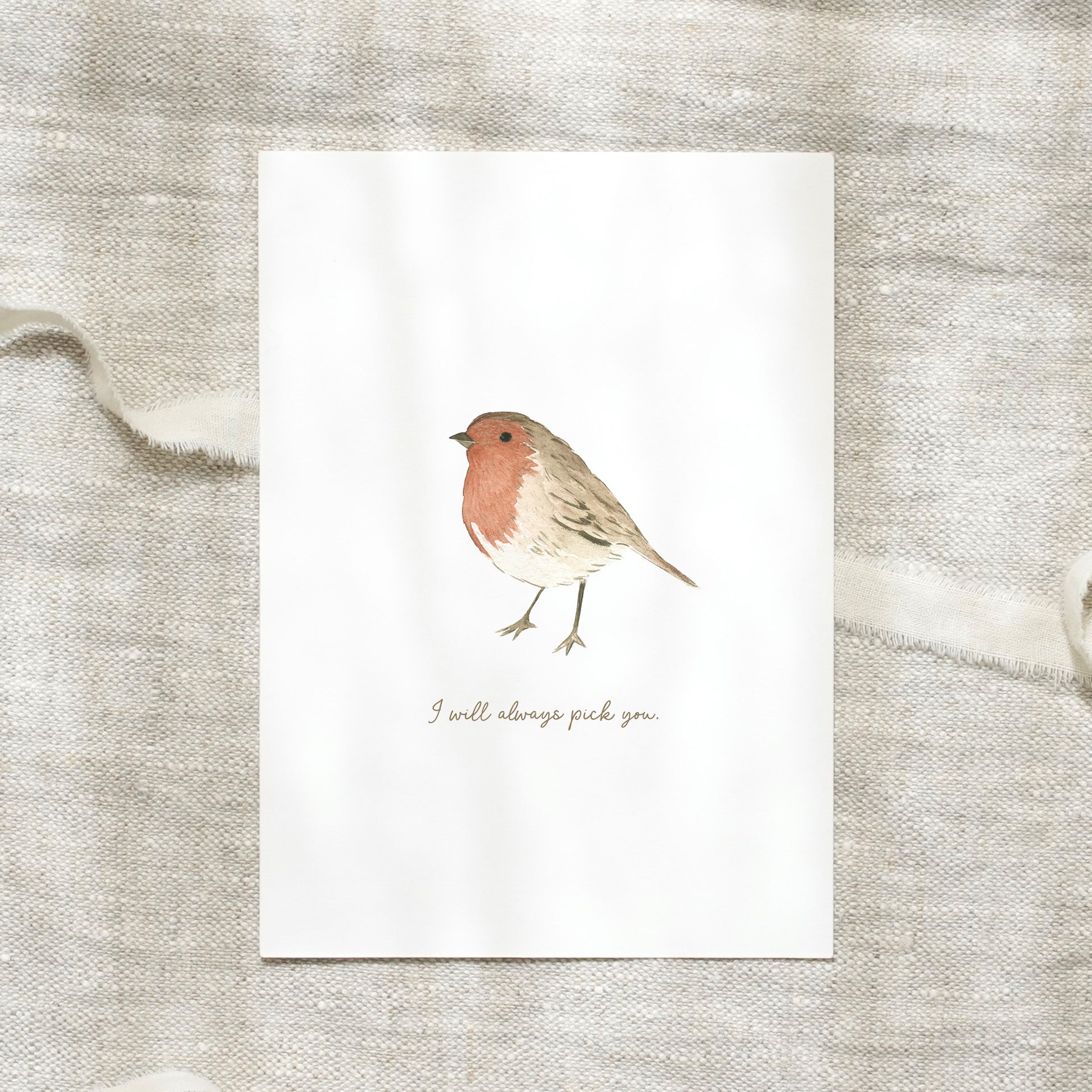Die Karte wurde regional gedruckt auf hochwertigem, warmweißem Naturpapier (300 g, FSC-zertifiziert) mit einer sanften Oberflächenstruktur, was gut zum Charakter der Aquarelle passt.