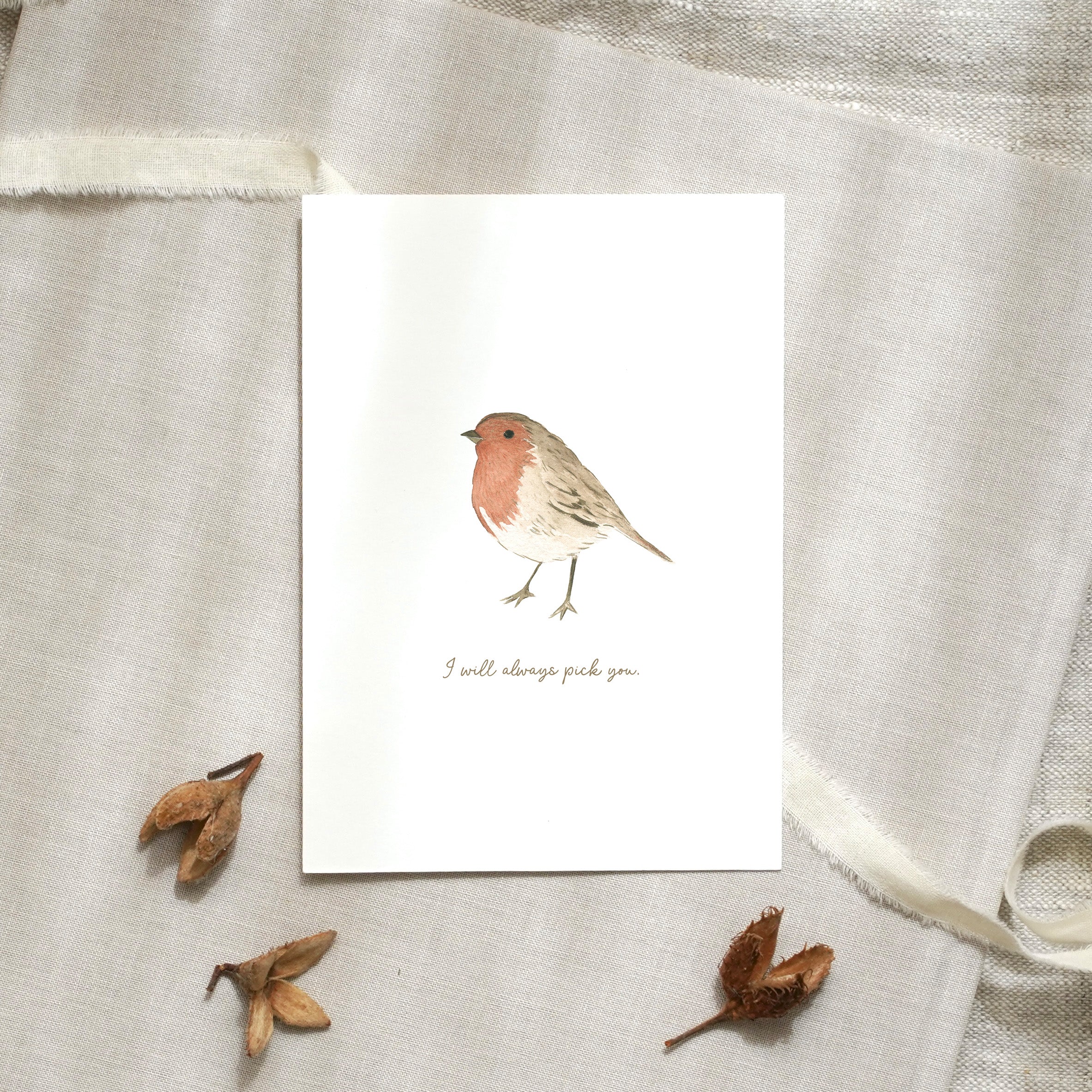 Dieses Motiv entstand in unserem Atelier, handgemalt von Leonie. Wir arbeiten bewusst analog, mit klassischen Aquarelltechniken. Mit Pinselstrichen, die sichtbar bleiben dürfen, mit Farbschichten, die sich berühren, überlagern und lebendig werden. Unsere Motive erzählen leise Geschichten – inspiriert von der Natur, vom Alltäglichen, vom Zauber im Unscheinbaren.