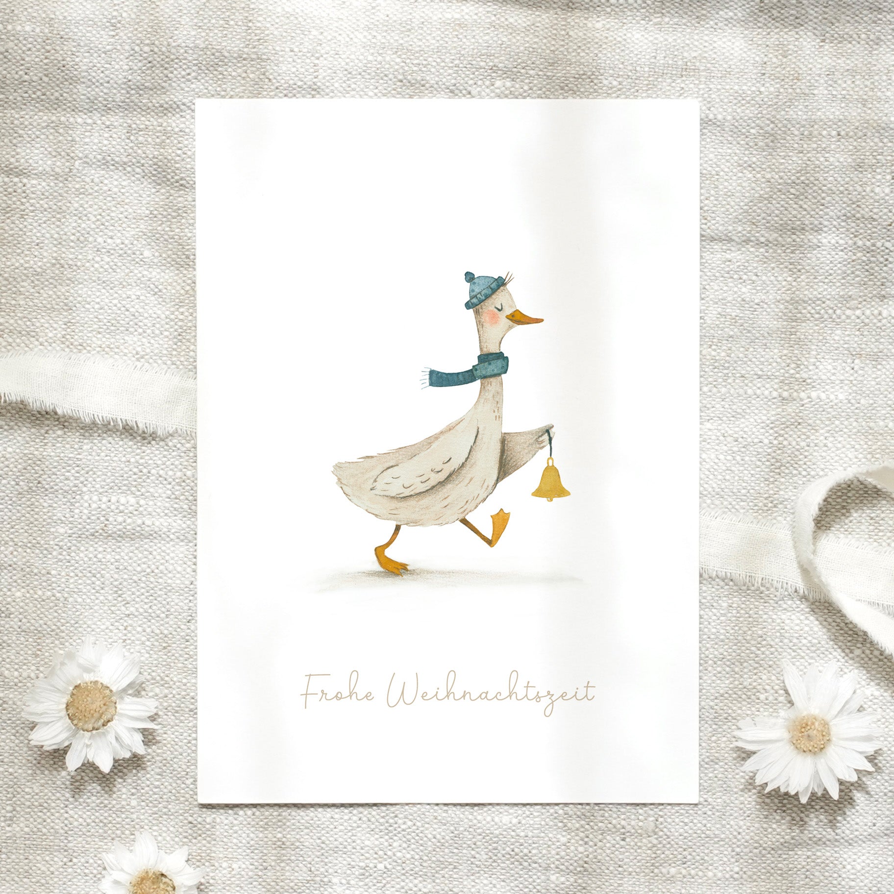 Die Karte wurde regional gedruckt auf hochwertigem, warmweißem Naturpapier (300 g, FSC-zertifiziert) mit einer sanften Oberflächenstruktur, was gut zum Charakter der Aquarelle passt.