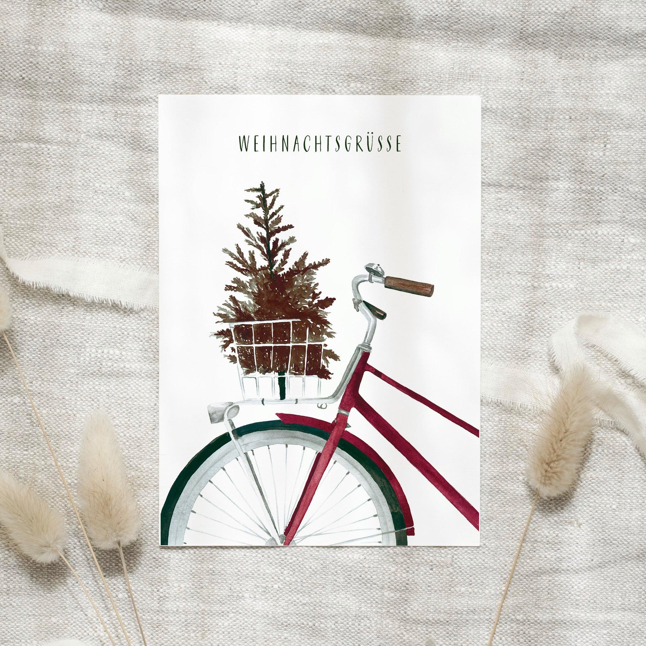Weihnachtskarte Aquarell Fahrrad - Handgemalt und individuell