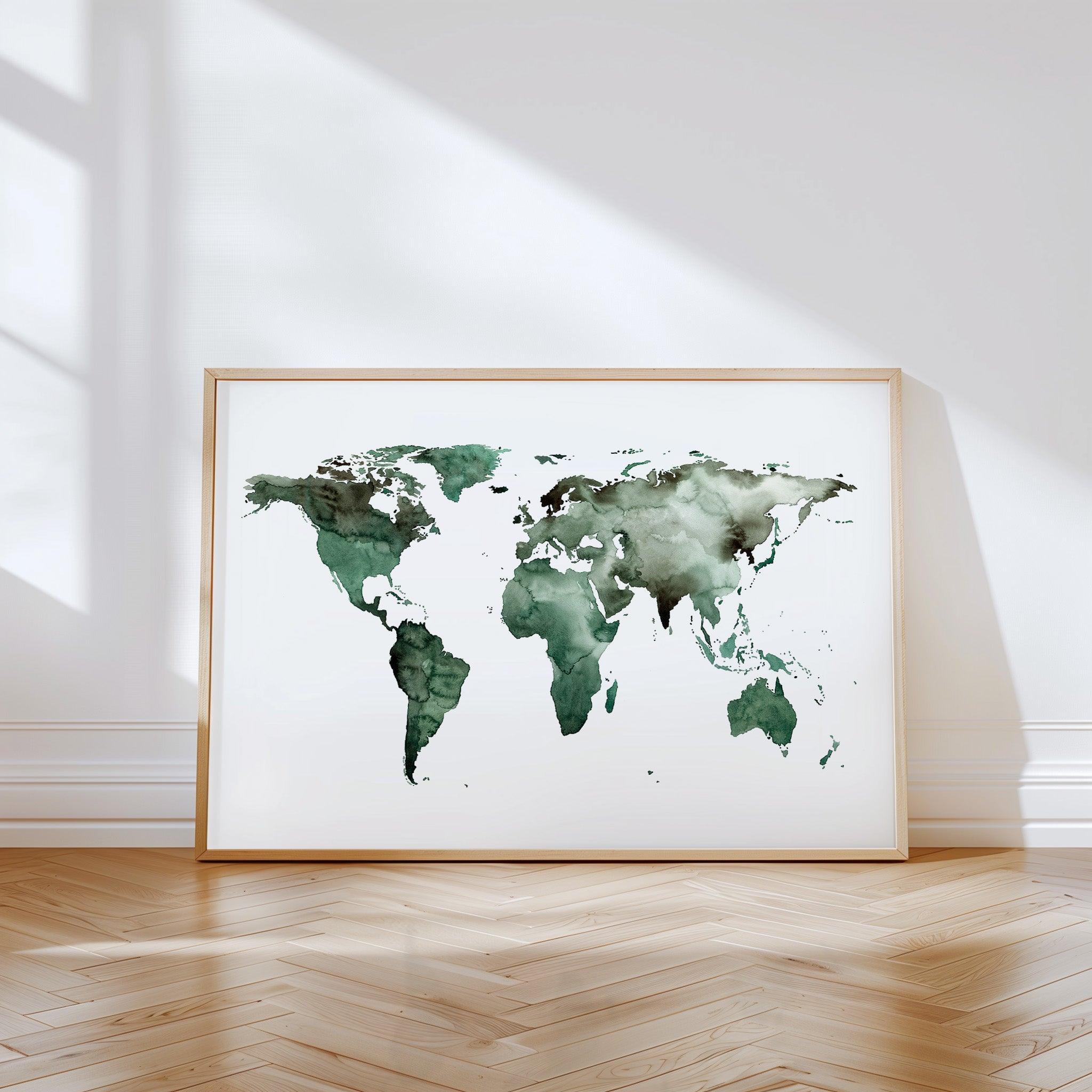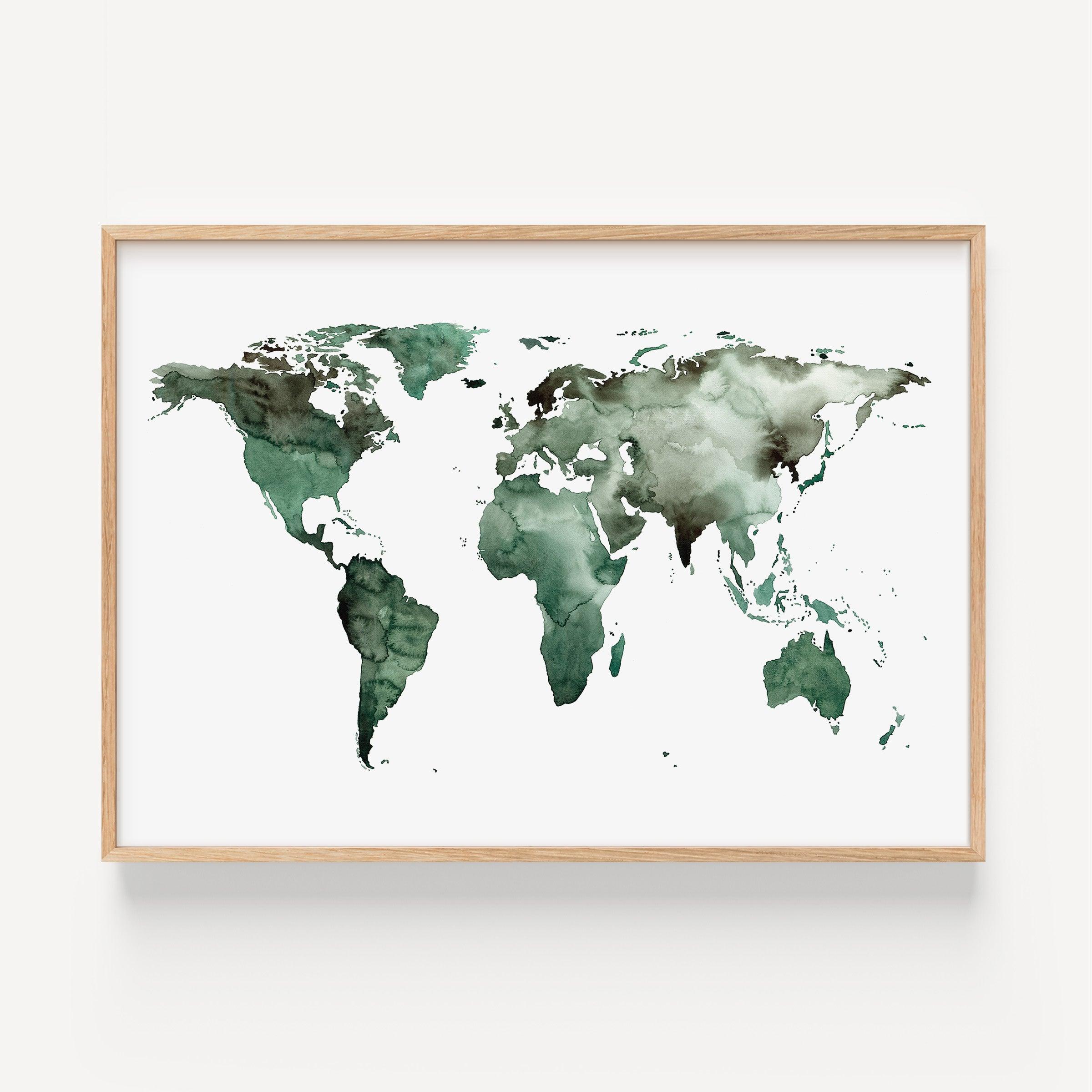 Art Print - World Map | World map Green