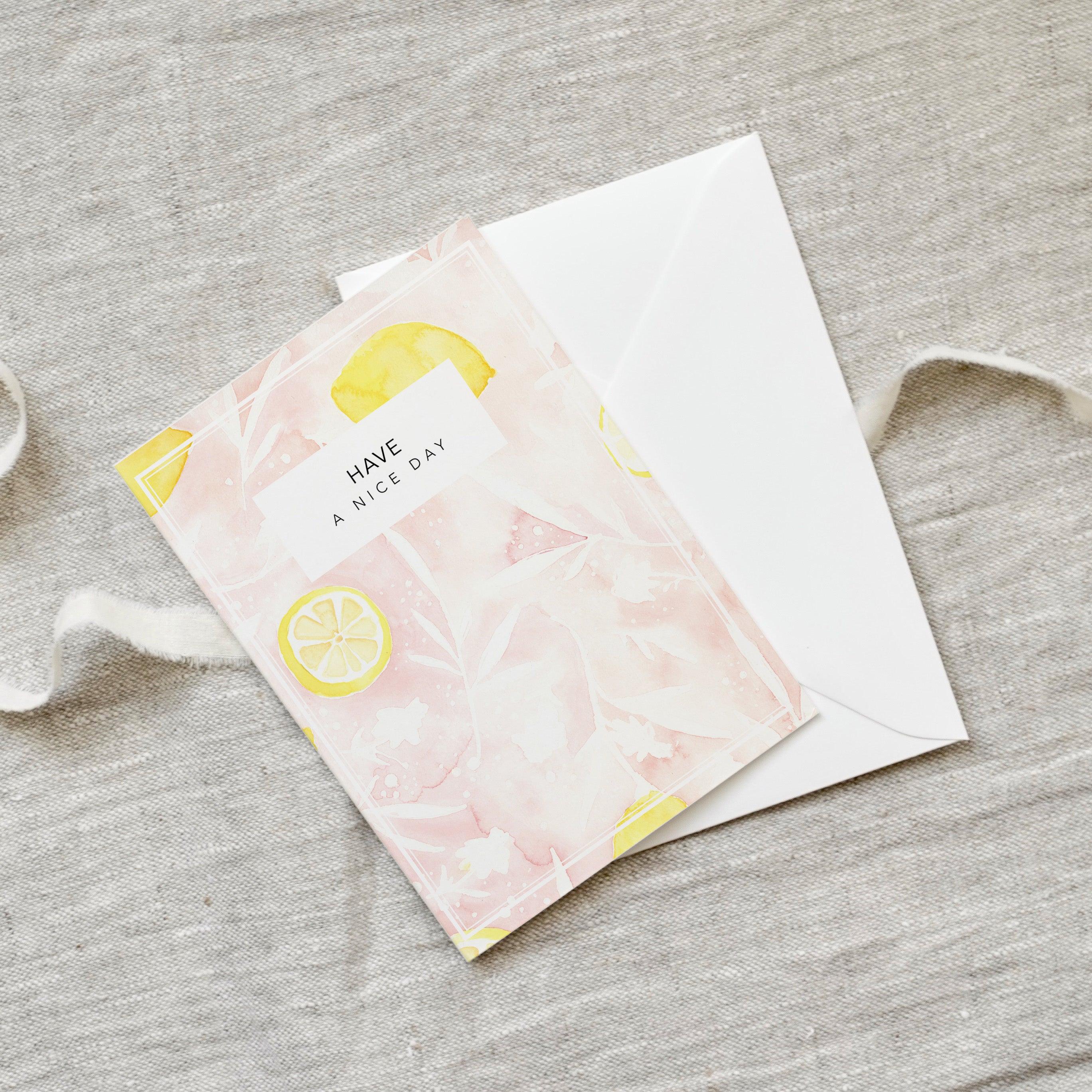 The format of the folding card is 14.8 x 10.5 cm (DIN A6). The card is sent with a matching cream-colored envelope. It is printed on a cream-colored natural paper (300g).