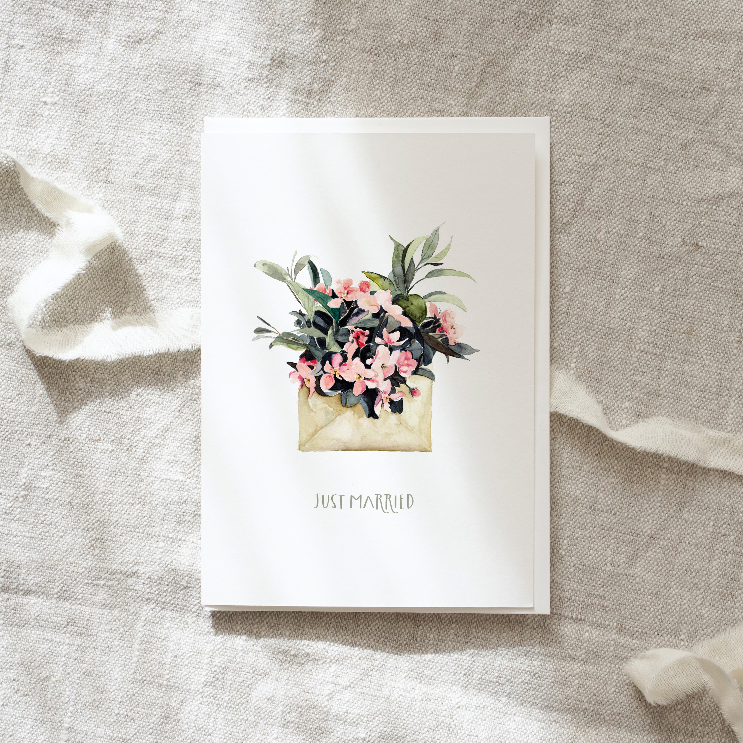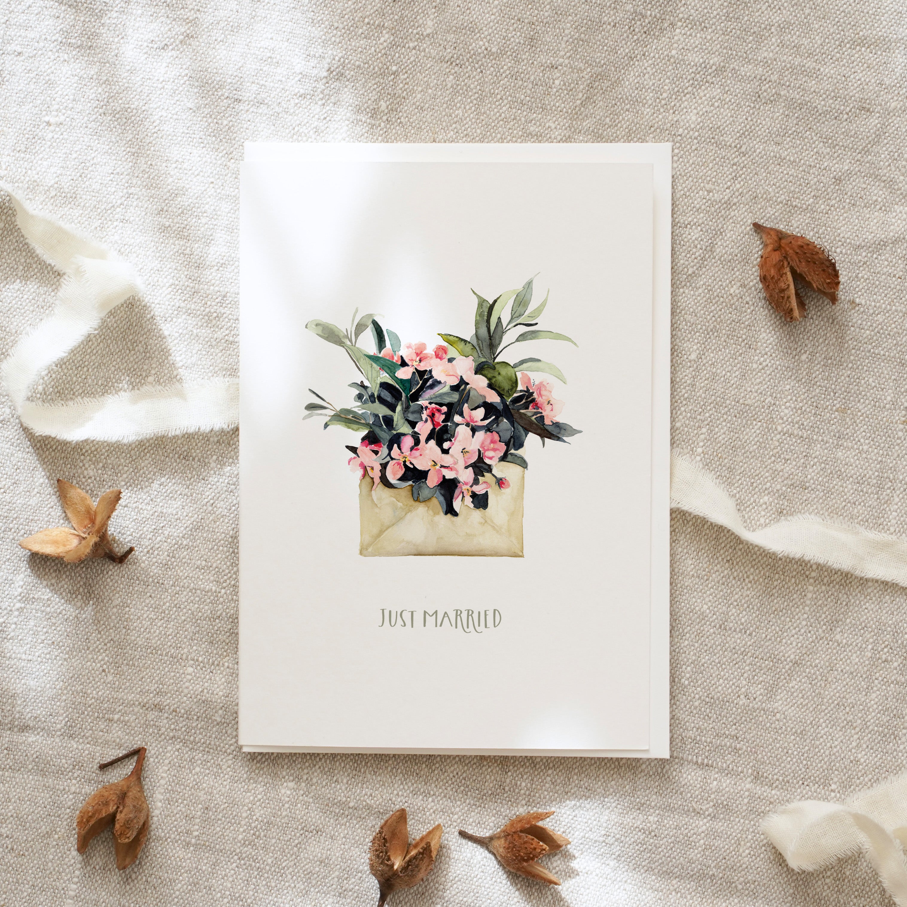 The format of the folding card is 14.8 x 10.5 cm (DIN A6). The card is sent with a matching cream-colored envelope. It is printed on a cream-colored natural paper (300g).