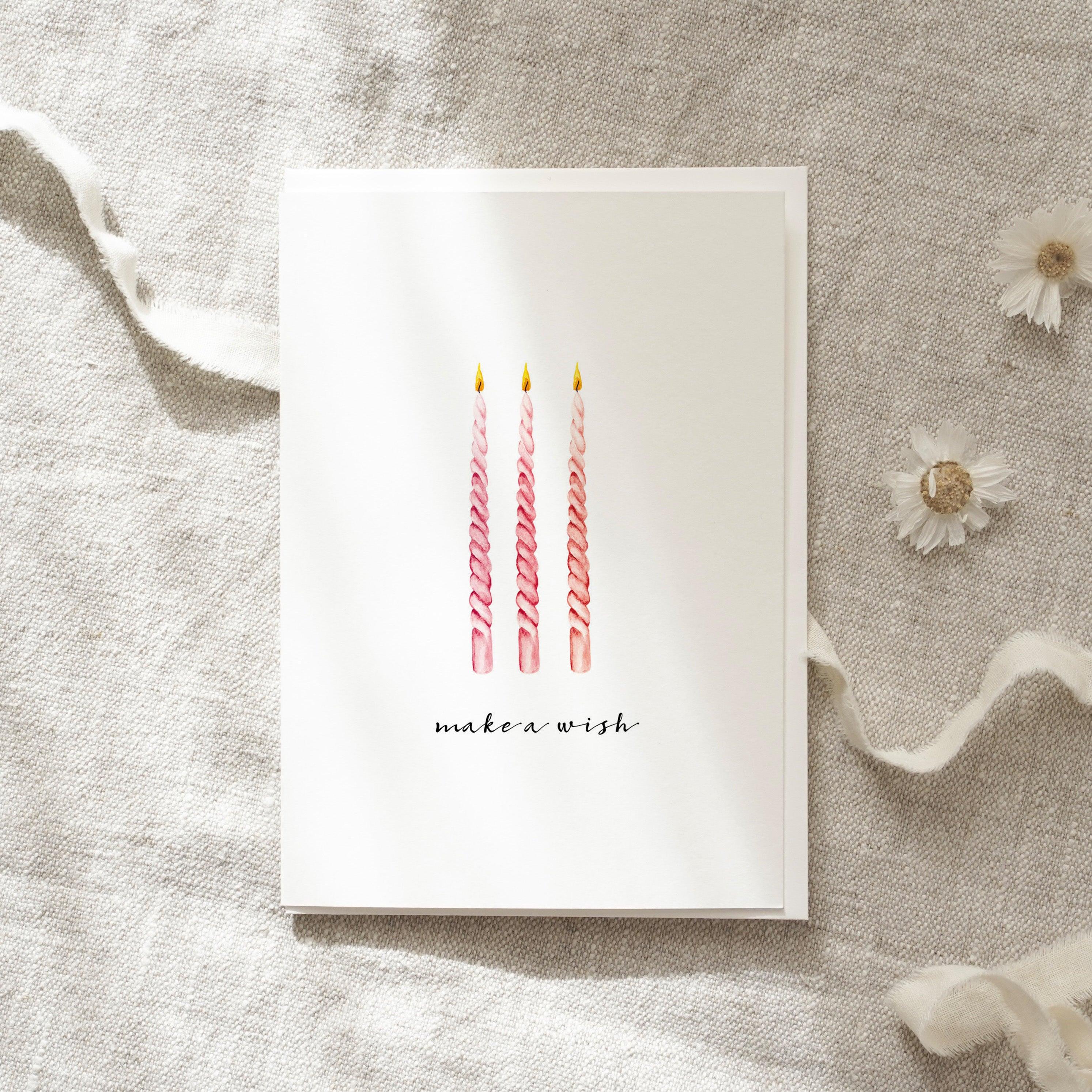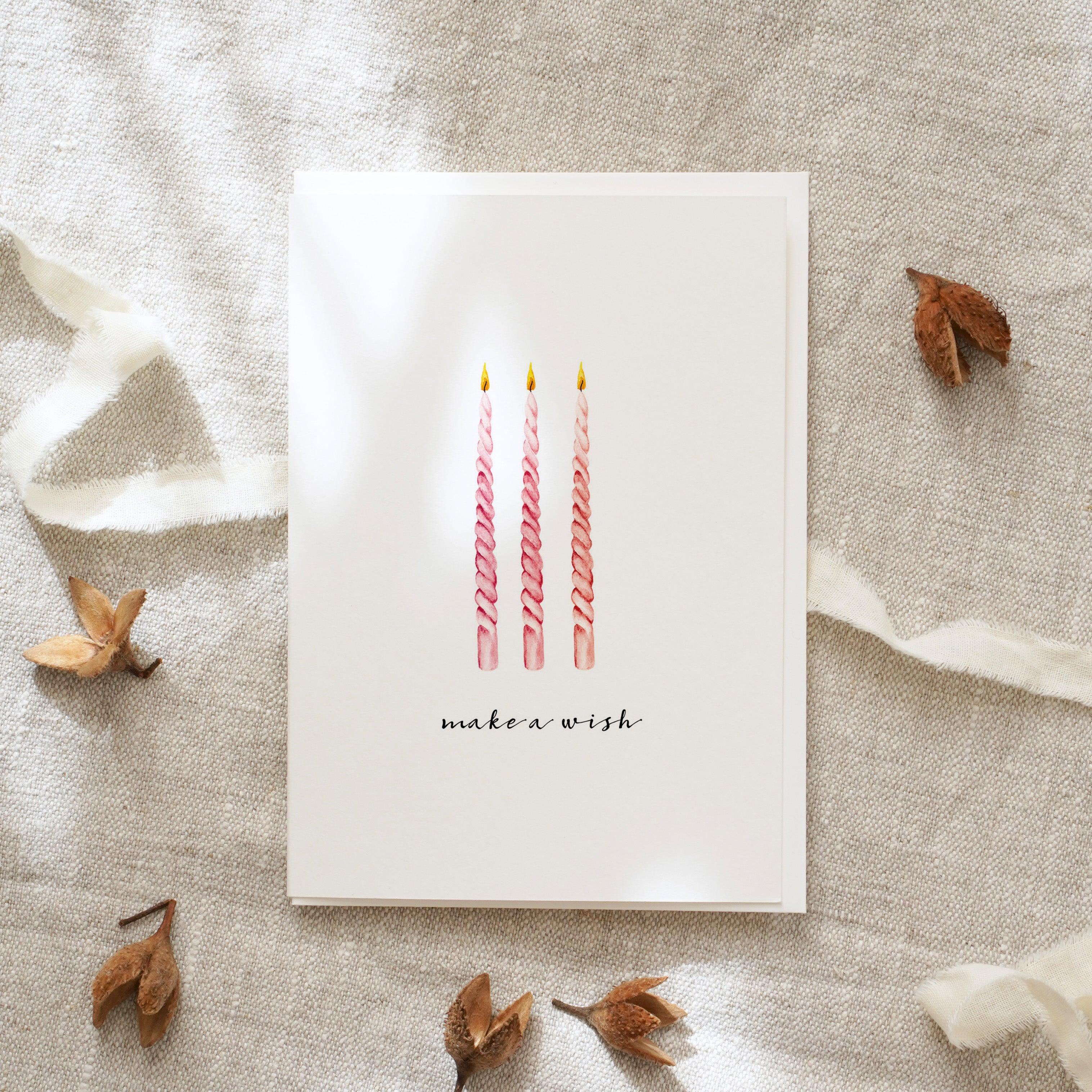 The format of the folding card is 11.0 x 15.5 cm. The card is sent with a matching cream-colored envelope.