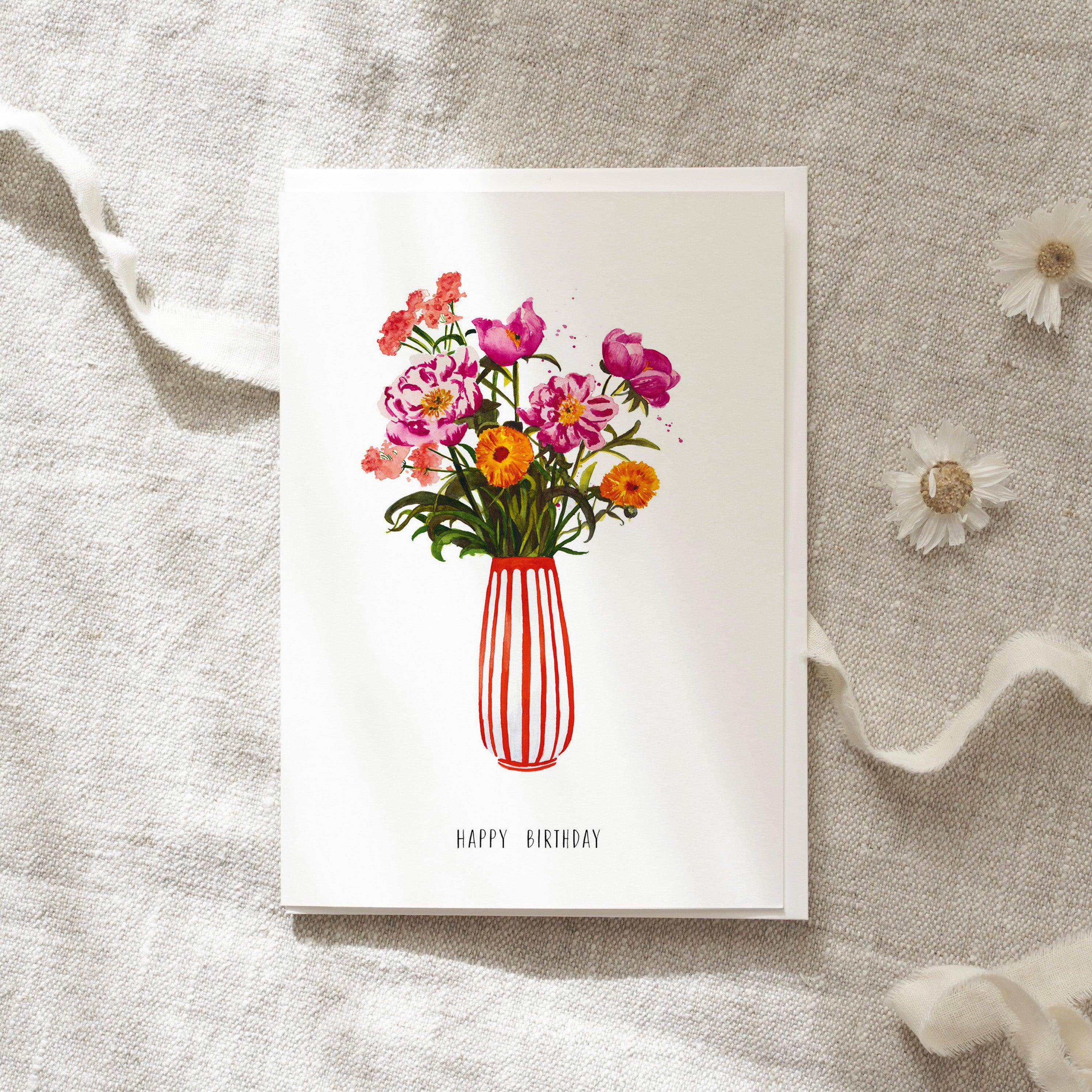 Greeting Card Happy Birthday Pink Peonies