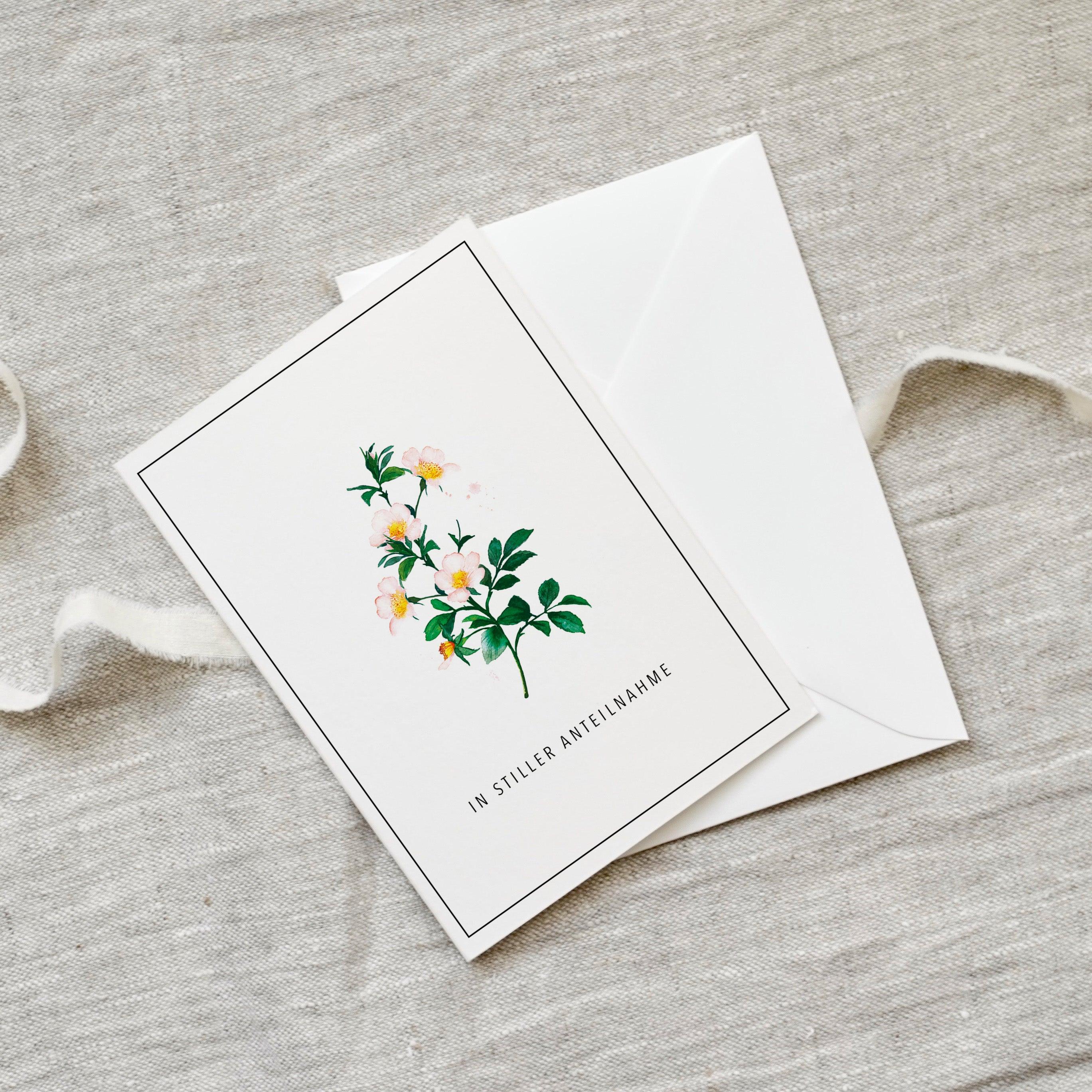 The format of the folding card is 11.0 x 15.5 cm. The card is sent with a matching cream-colored envelope.
