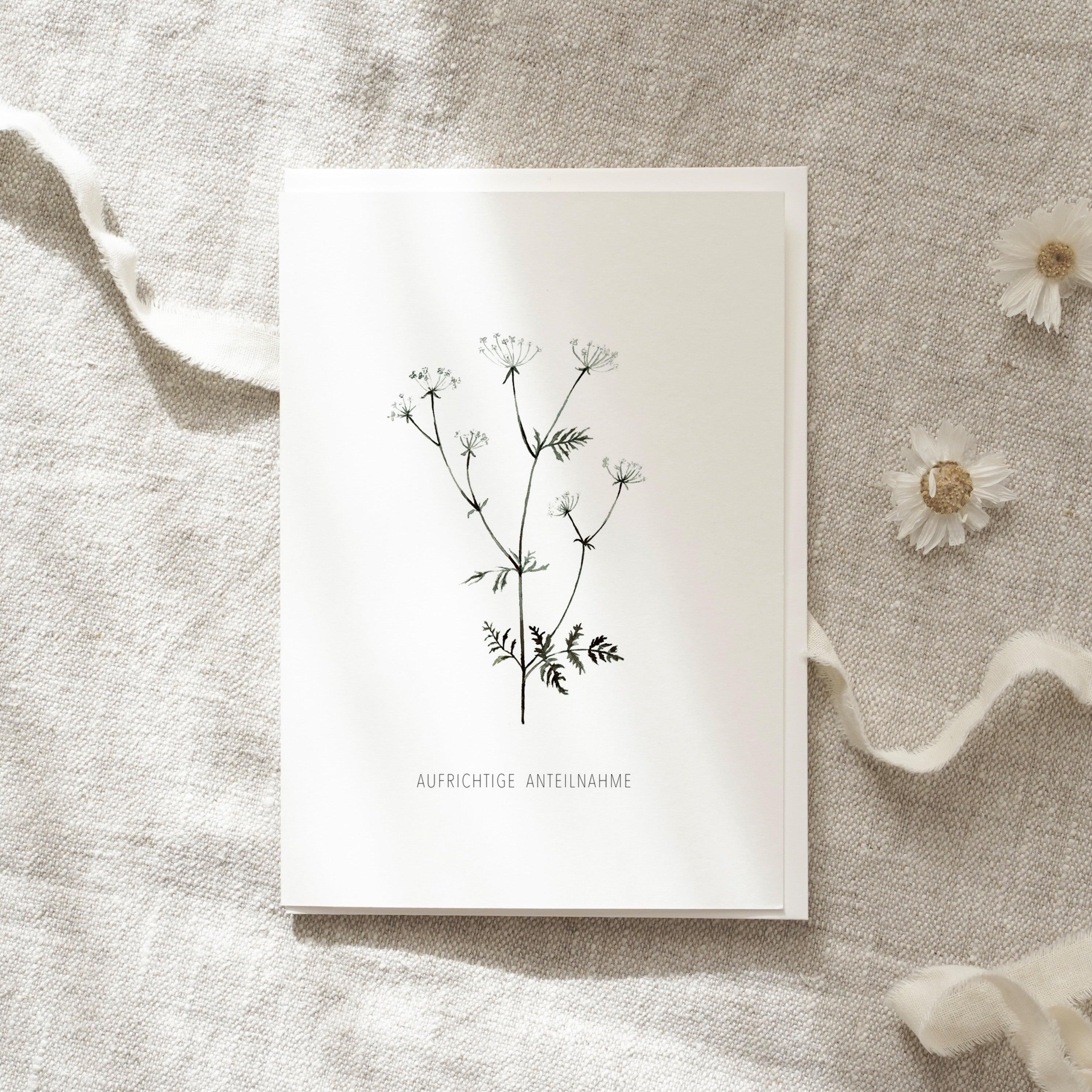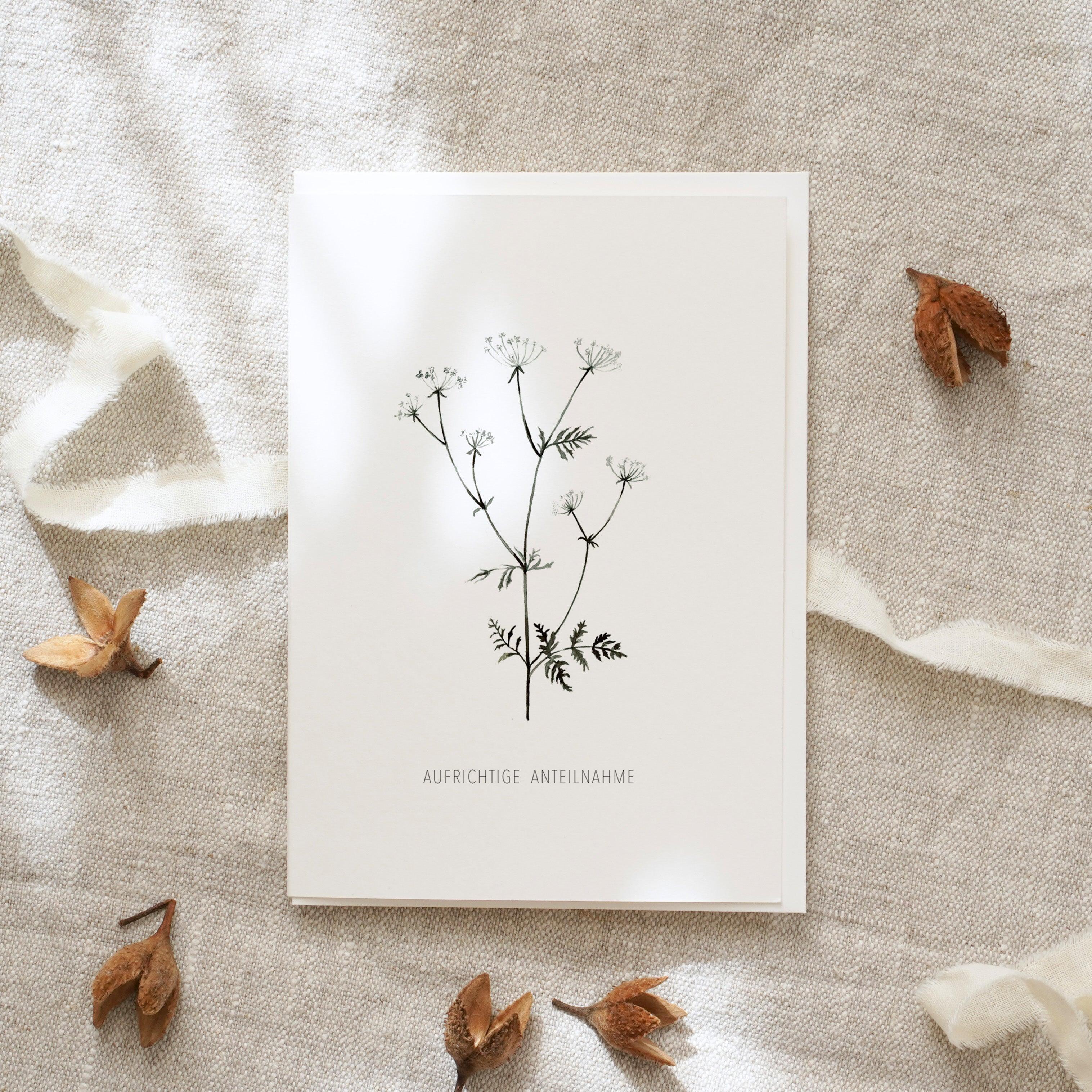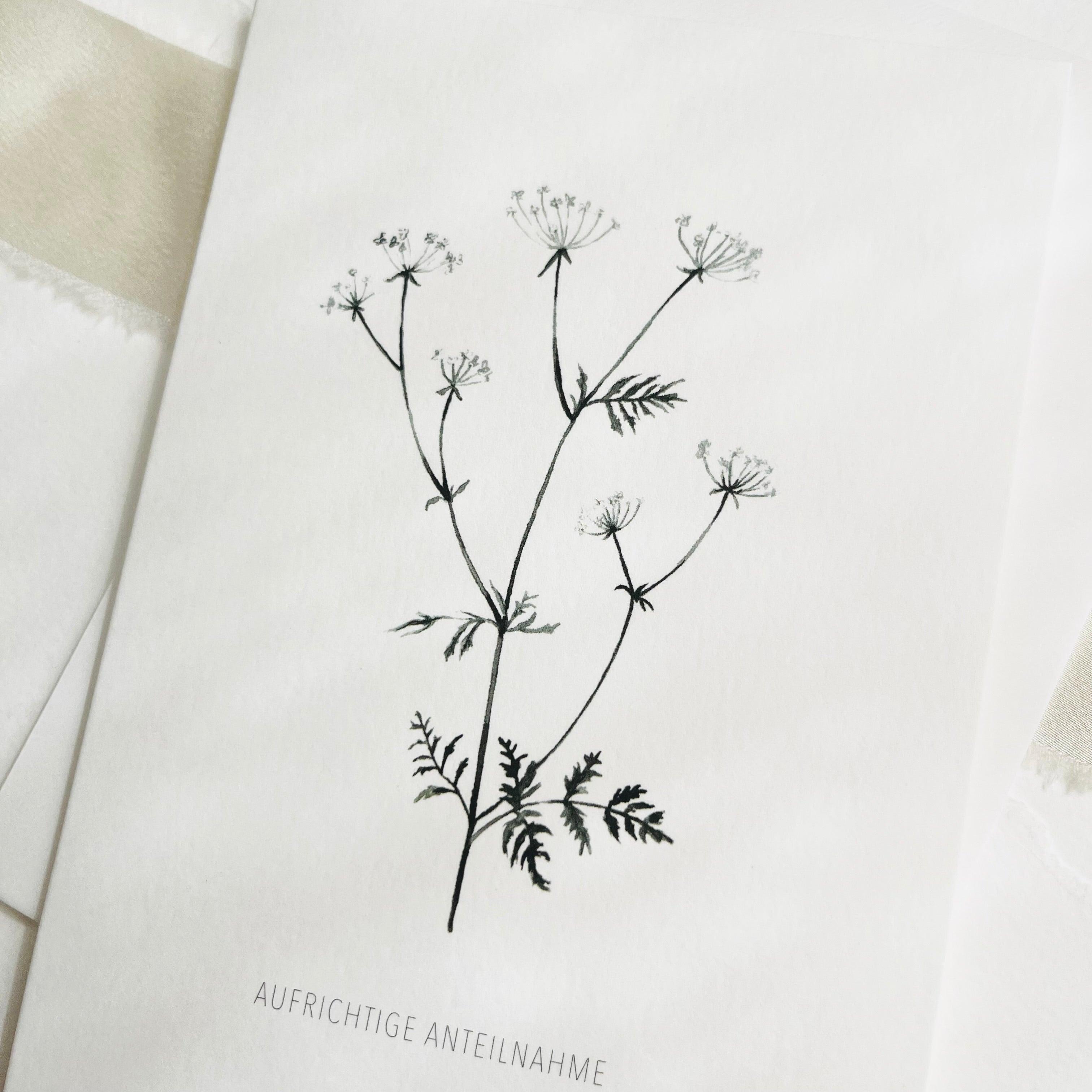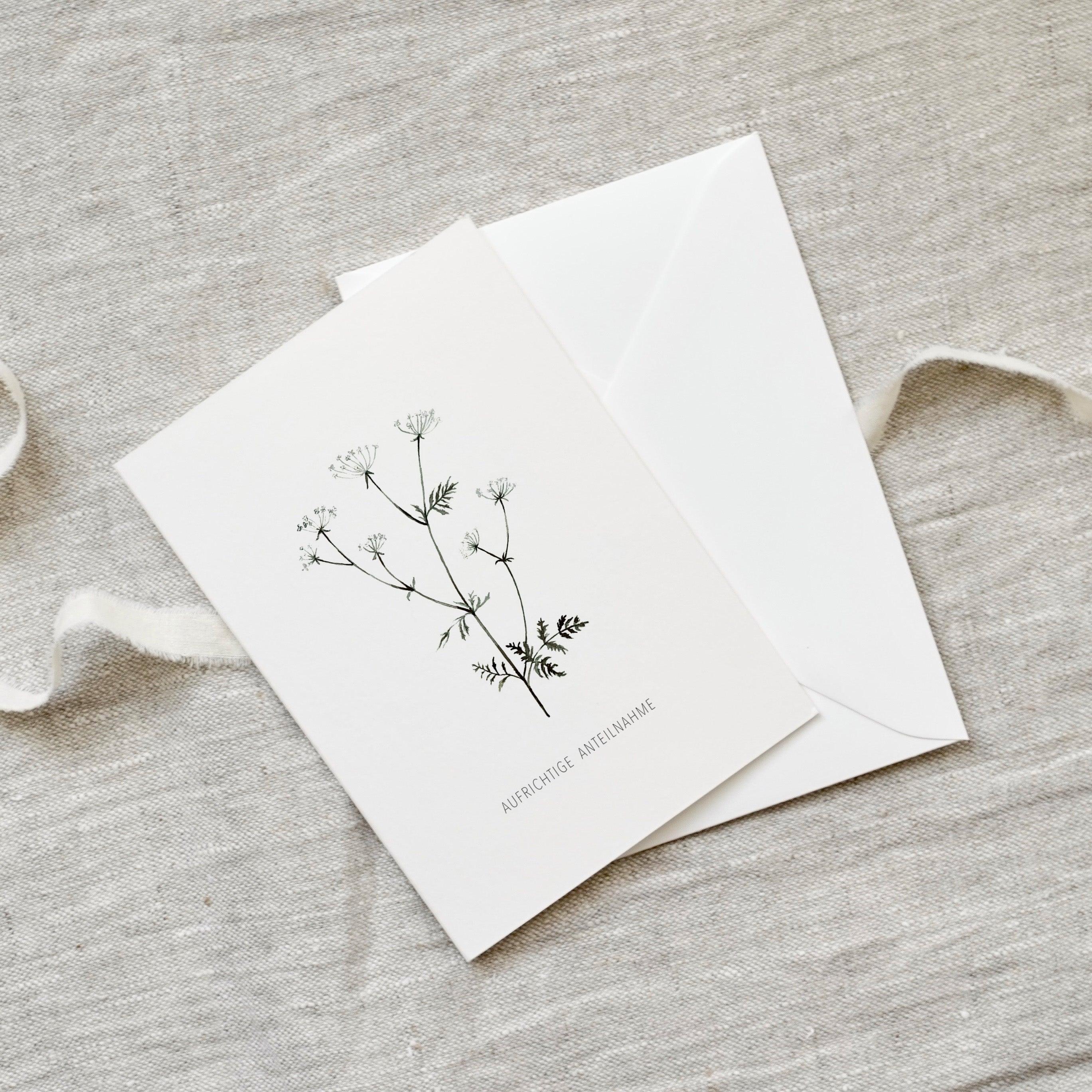The format of the folding card is 14.8 x 10.5 cm (DIN A6). The card is sent with a matching cream-colored envelope. It is printed on a cream-colored natural paper (300g).