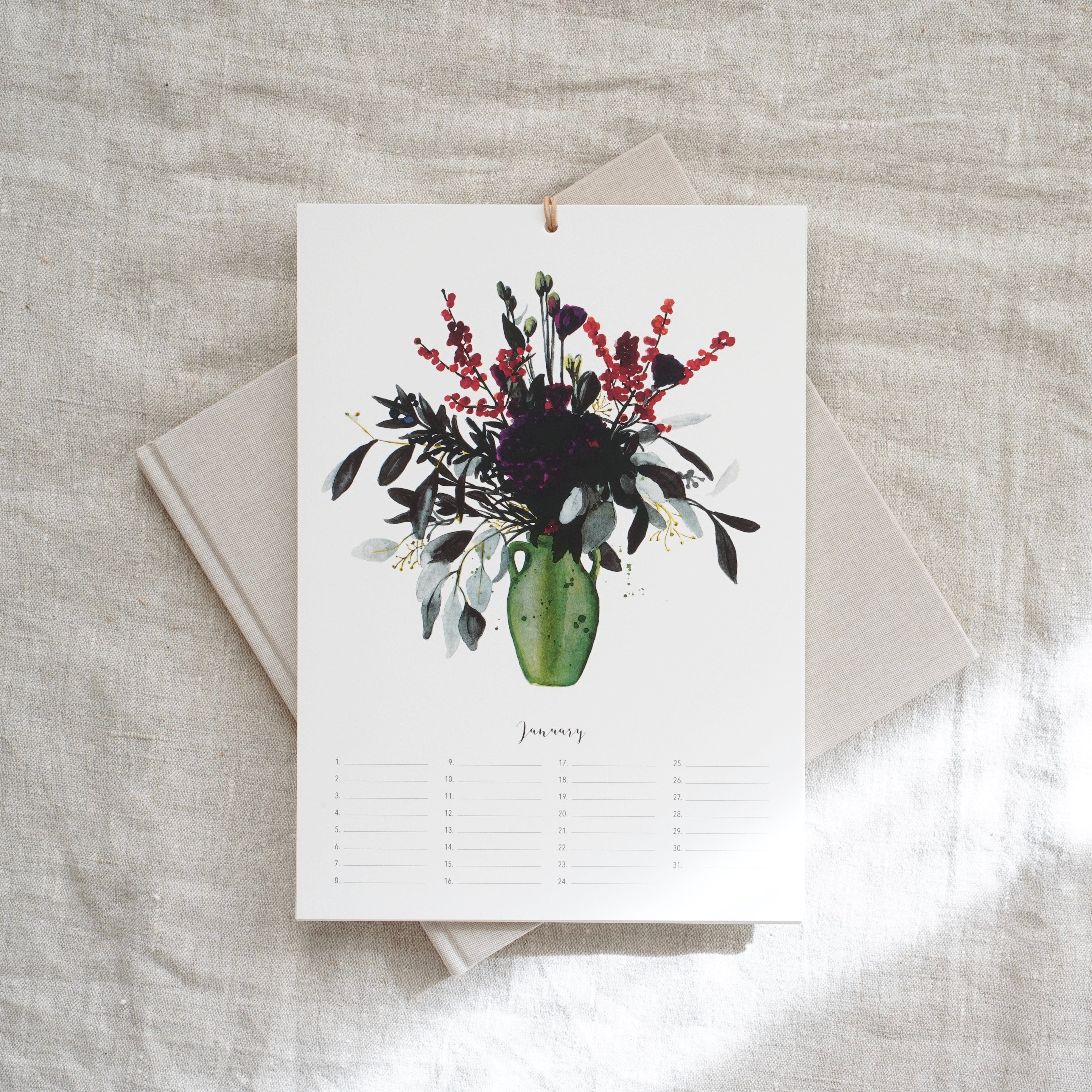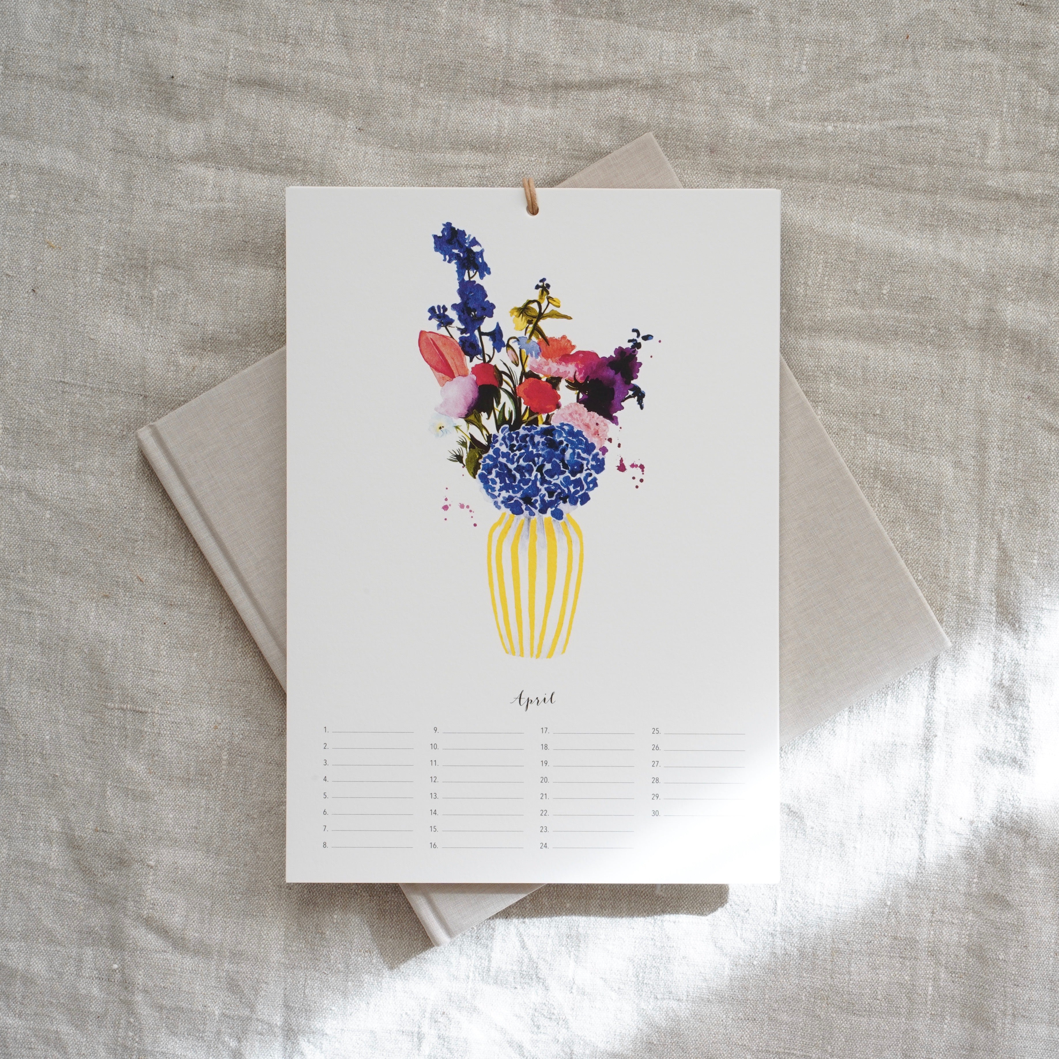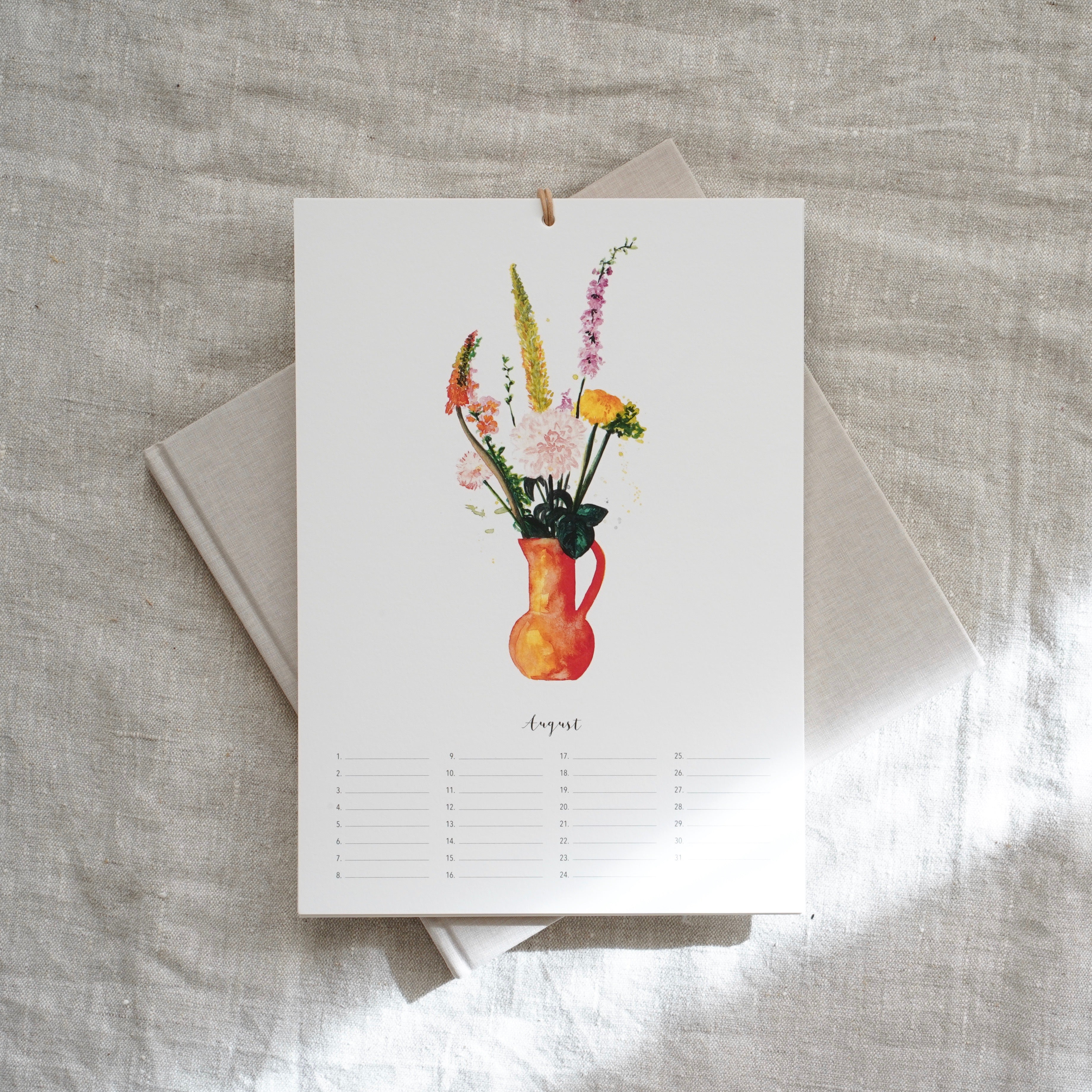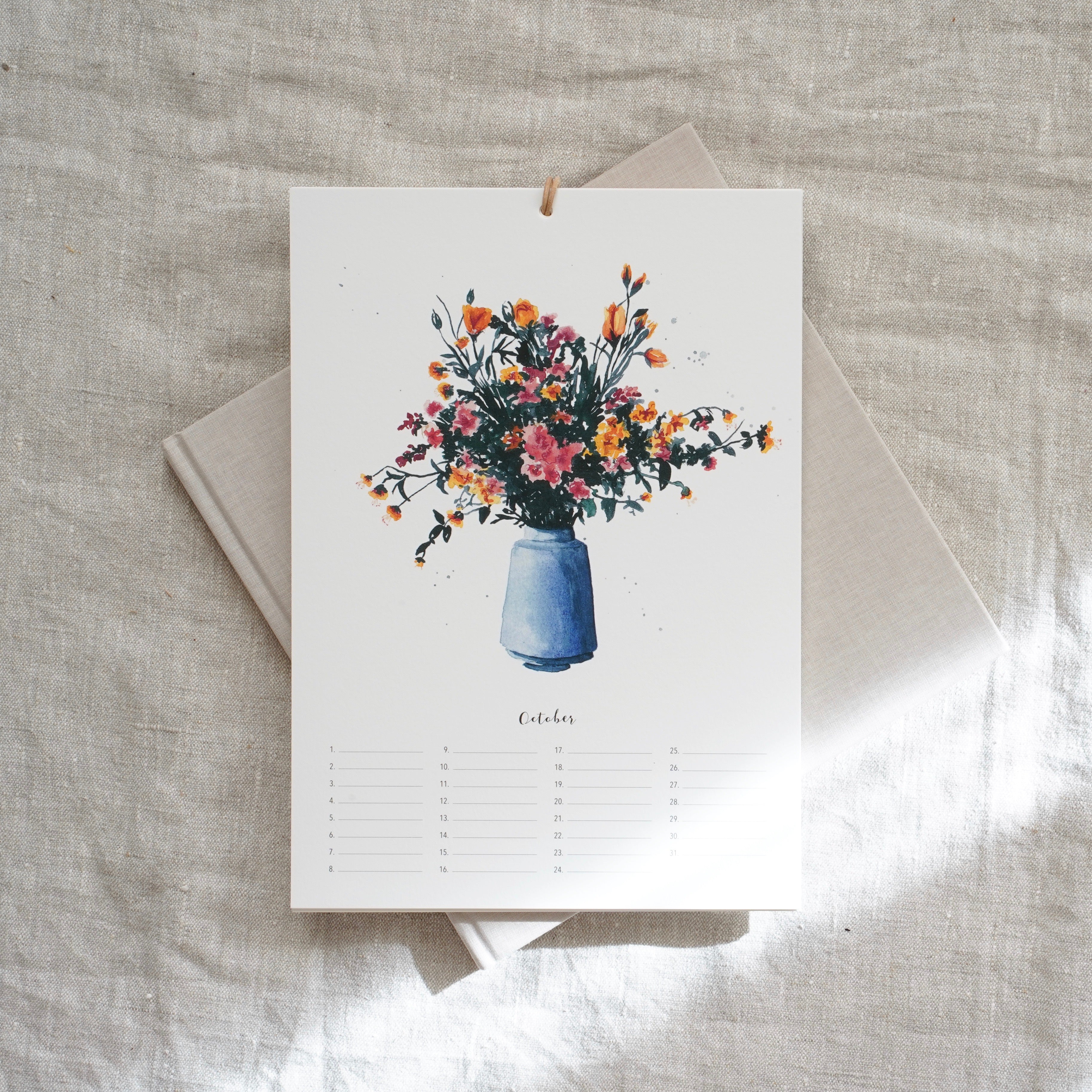 Mit 12 liebevoll von Hand gemalten Aquarell-Illustrationen zum Thema Blumen wird jeder Monat zu einem farbenfrohen Kunstwerk und erinnert an die Schönheit der Natur. Die Blumensträuße spiegeln die verschiedenen Jahreszeiten in ihrer Farbgebung wider.