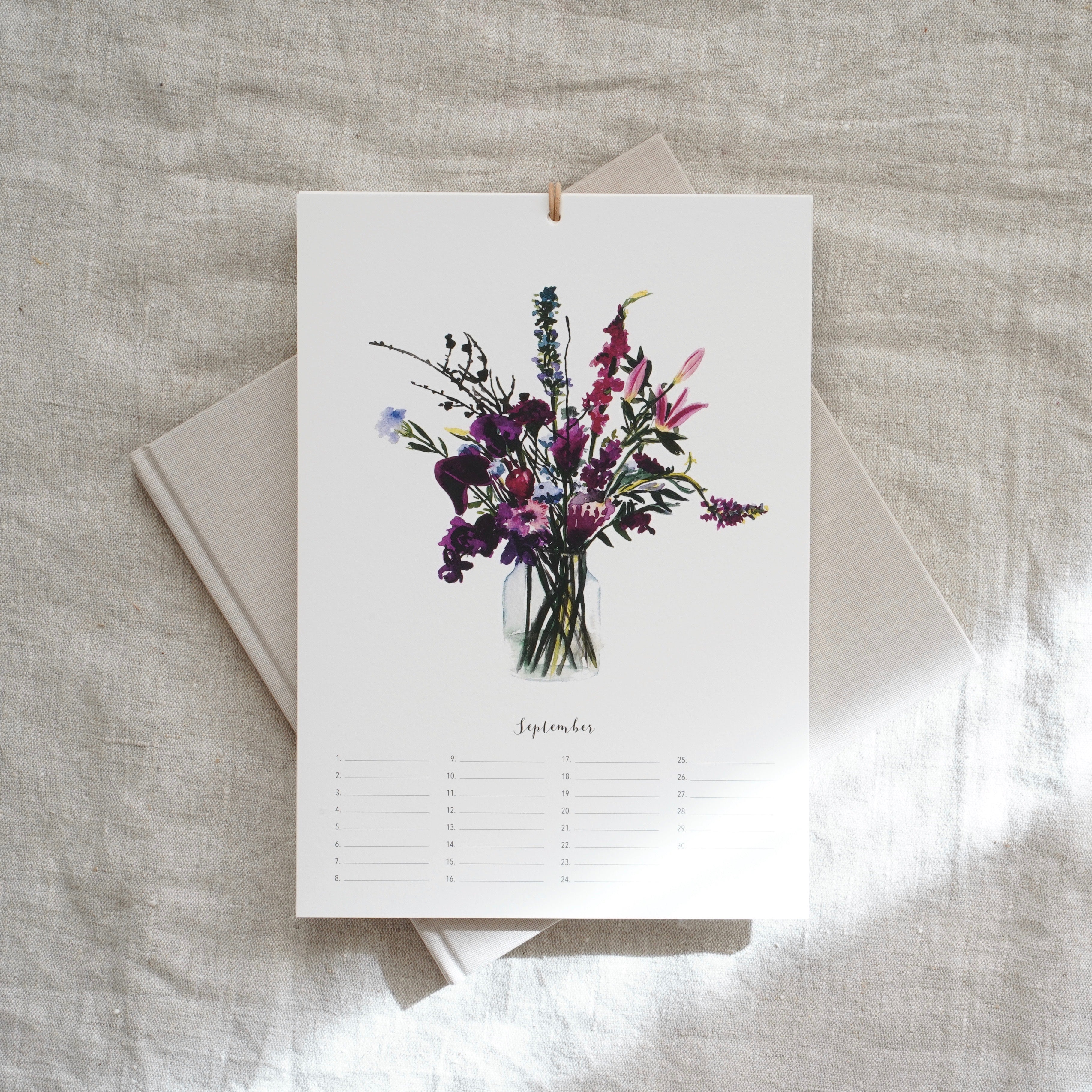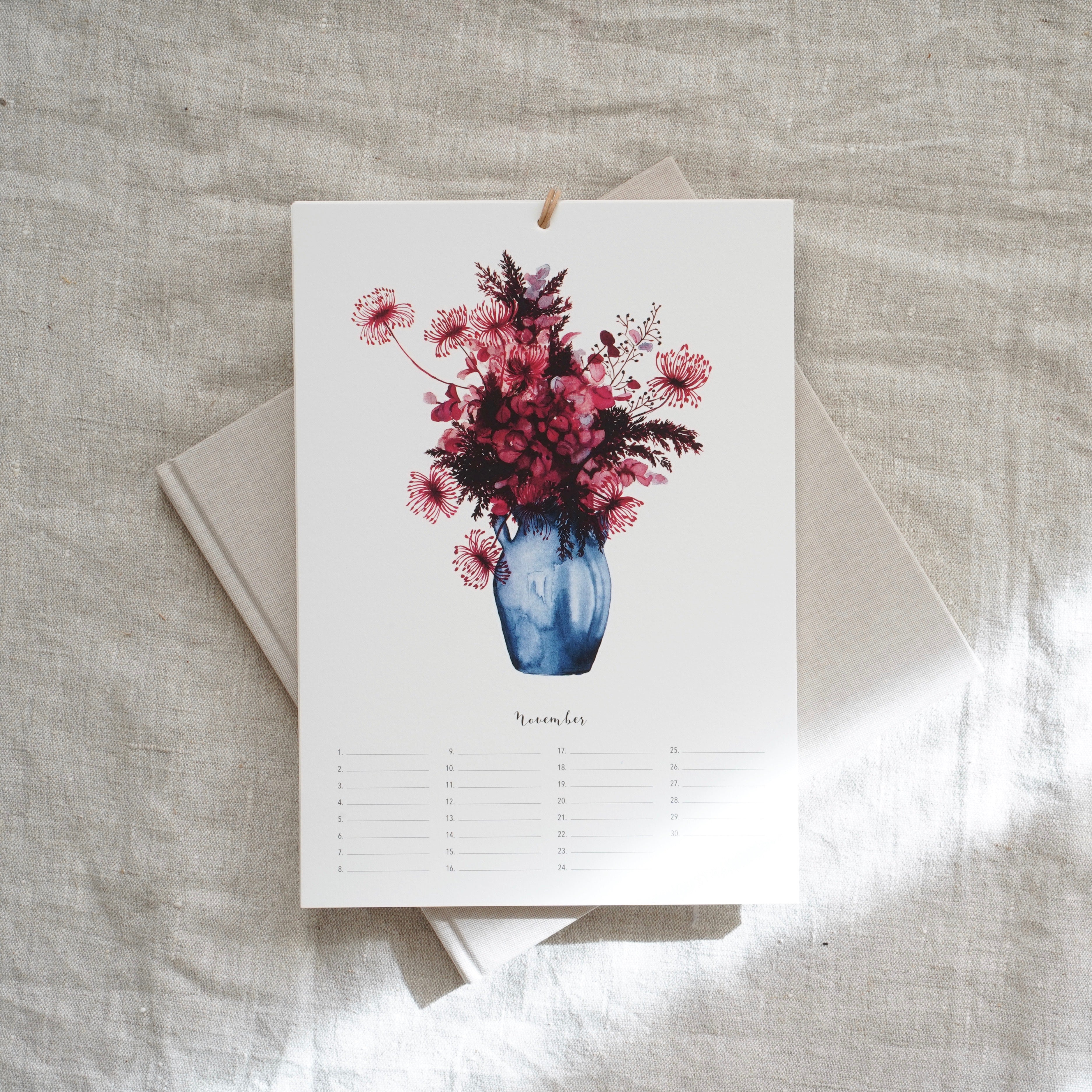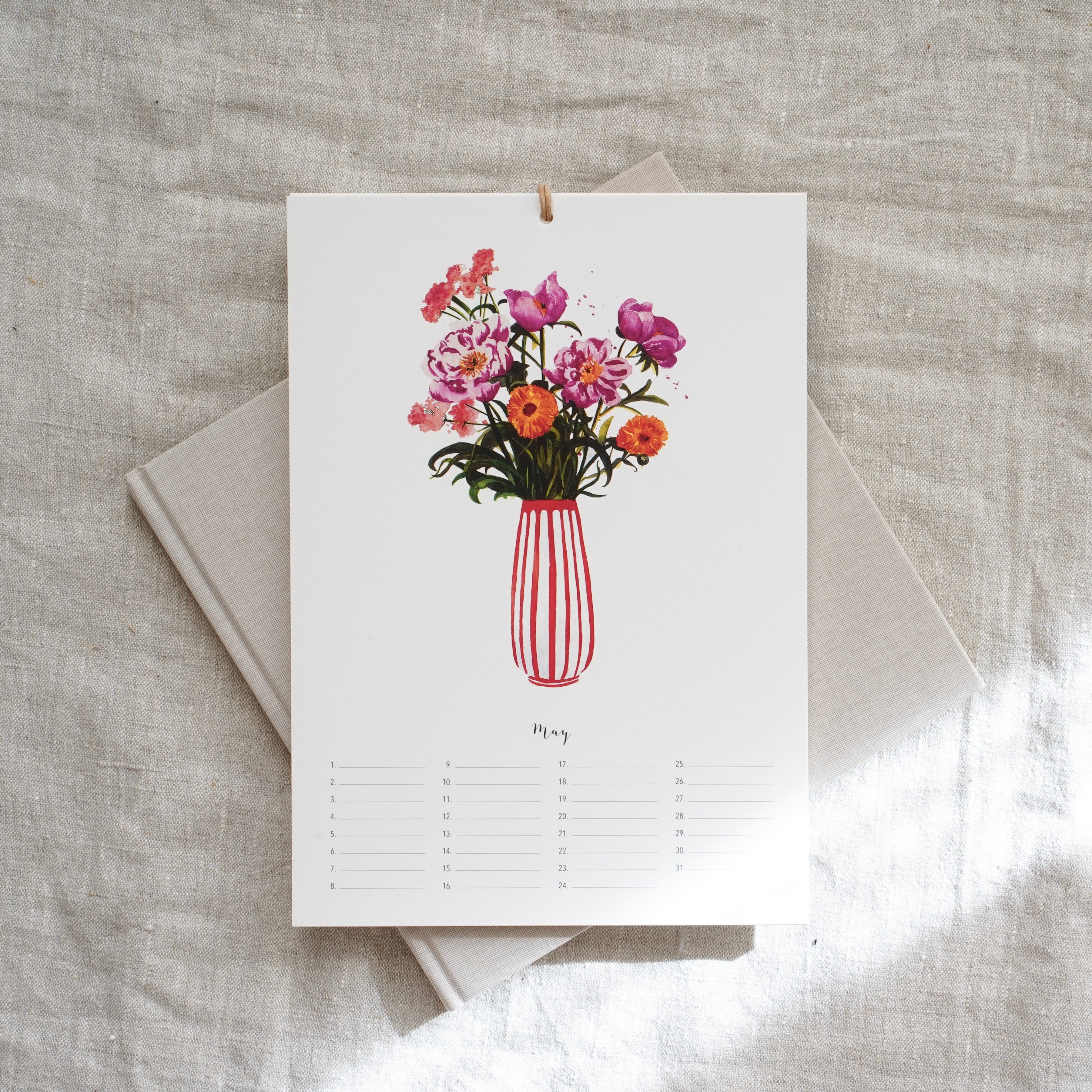 Mit 12 liebevoll von Hand gemalten Aquarell-Illustrationen zum Thema Blumen wird jeder Monat zu einem farbenfrohen Kunstwerk und erinnert an die Schönheit der Natur. Die Blumensträuße spiegeln die verschiedenen Jahreszeiten in ihrer Farbgebung wider.