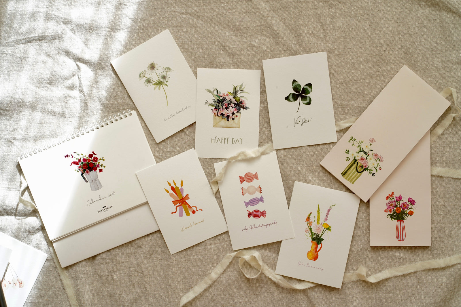 Alle Designs entstehen in unserem Atelier - liebevoll von Hand illustriert mit Pinsel, Stift und Farbe.